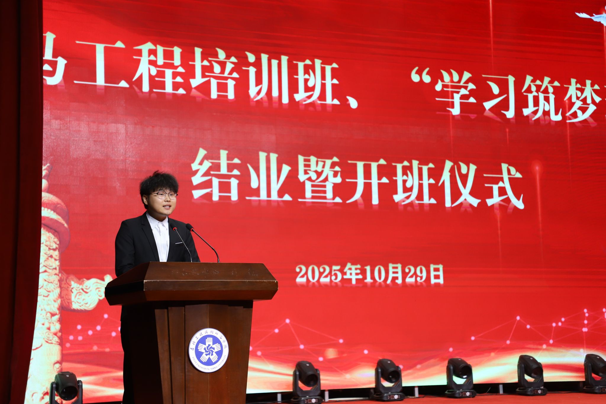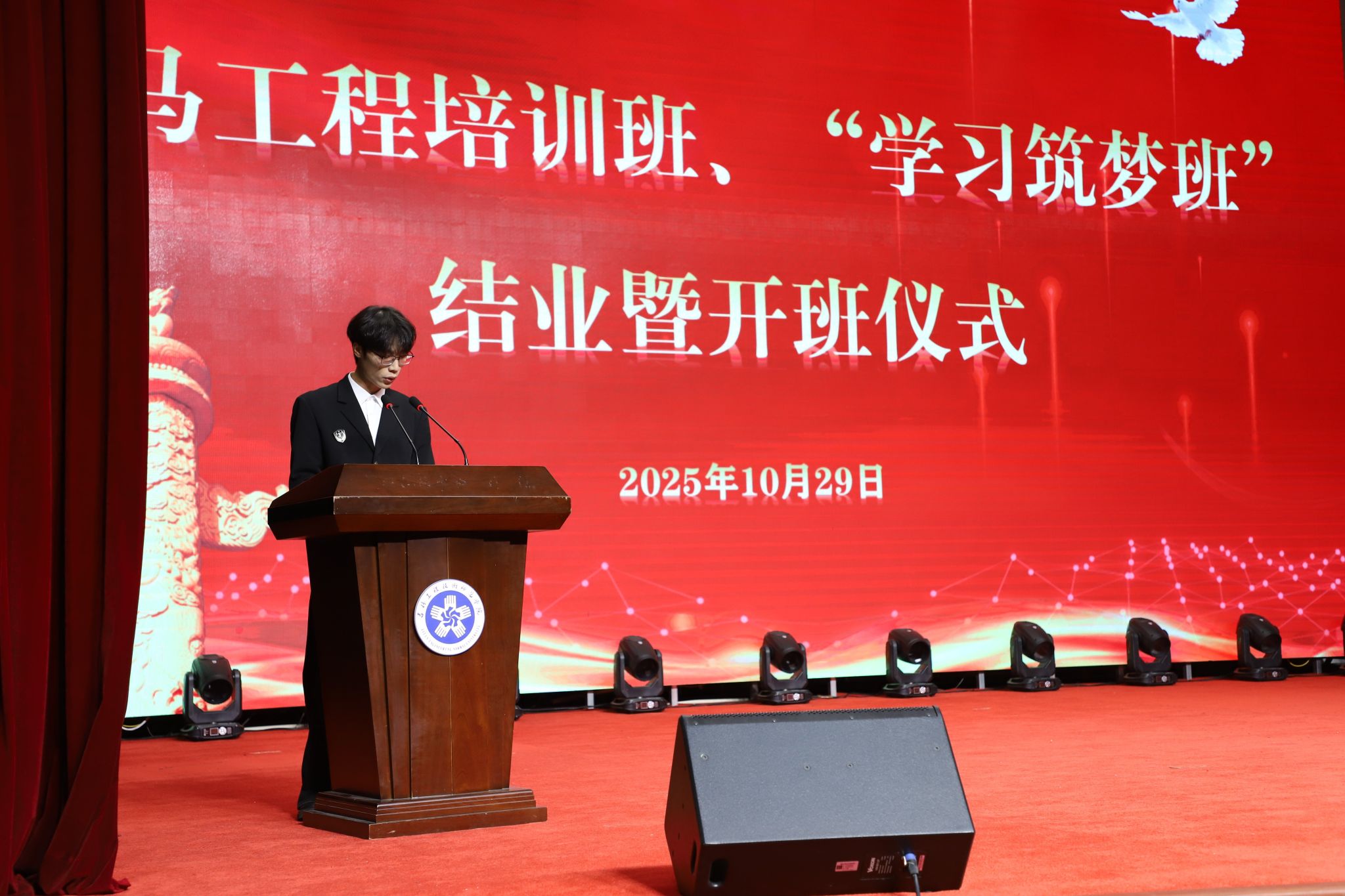 10月29日,学校在凯旋校区报告厅举行青马工程培训班、“学习筑梦班”结业暨开班仪式。学校党委副书记刘鹏飞,党委常委、宣传部部长程宇,党委学生工作部部长武德峰,马克思主义学院院长毛锐,关心下一代工作委员会秘书长刘晓敏,青马工程培训班、“学习筑梦班”结业学员代表及新一期全体学员出席仪式。仪式由校团委副书记李晓程主持。