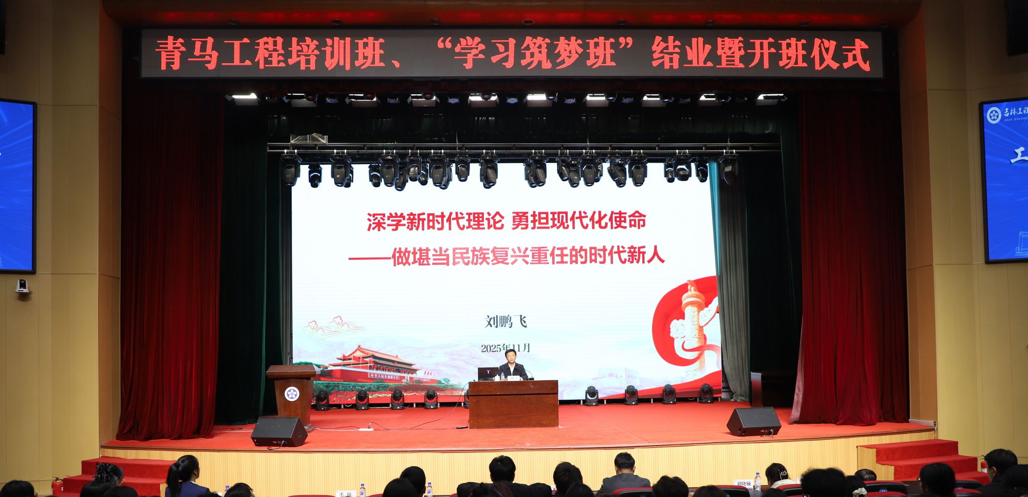 仪式结束后,刘鹏飞依托“工师青年大讲堂”为全体青马学员及“学习筑梦班”学员作了题为《深学新时代理论,勇担现代化使命——做堪当民族复兴重任的时代新人》的专题辅导报告。从青年奋斗的坐标方位、坚定信仰的源头活水、掌握理论的正确方法、躬行实践的矢志追求、挺膺担当的强力步伐五个方面对新时代理论、现代化使命进行了深入讲解。教导青马学员及“学习筑梦班”学员在思想淬炼中校准青春航向,在时代宏图中锚定使命坐标,深刻理解中国式现代化的内涵与特征,感受作为新时代青年在投身中国式现代化建设中的责任和使命。
