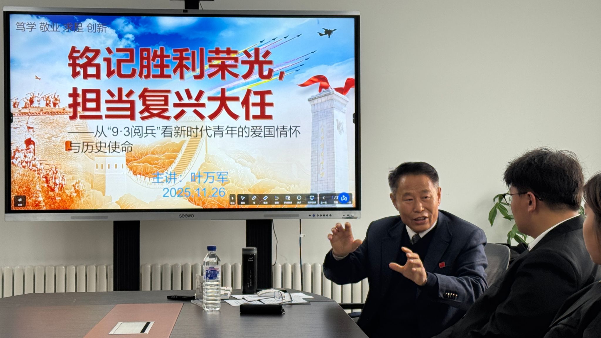 座谈会伊始,叶万军以2025 年“9・3 阅兵”的震撼画面为切入点,带领师生重温了那场庄重盛大的盛典。他讲到,受阅方阵铿锵的步伐、新型装备列阵的雄姿、老兵勋章闪耀的荣光,不仅展现了国家的强大实力,更承载着中华民族不屈不挠的奋斗记忆。这场阅兵绝非简单的仪式,而是一堂生动的爱国主义教育公开课,让每一位观者都深切感受到国家力量与民族自豪。