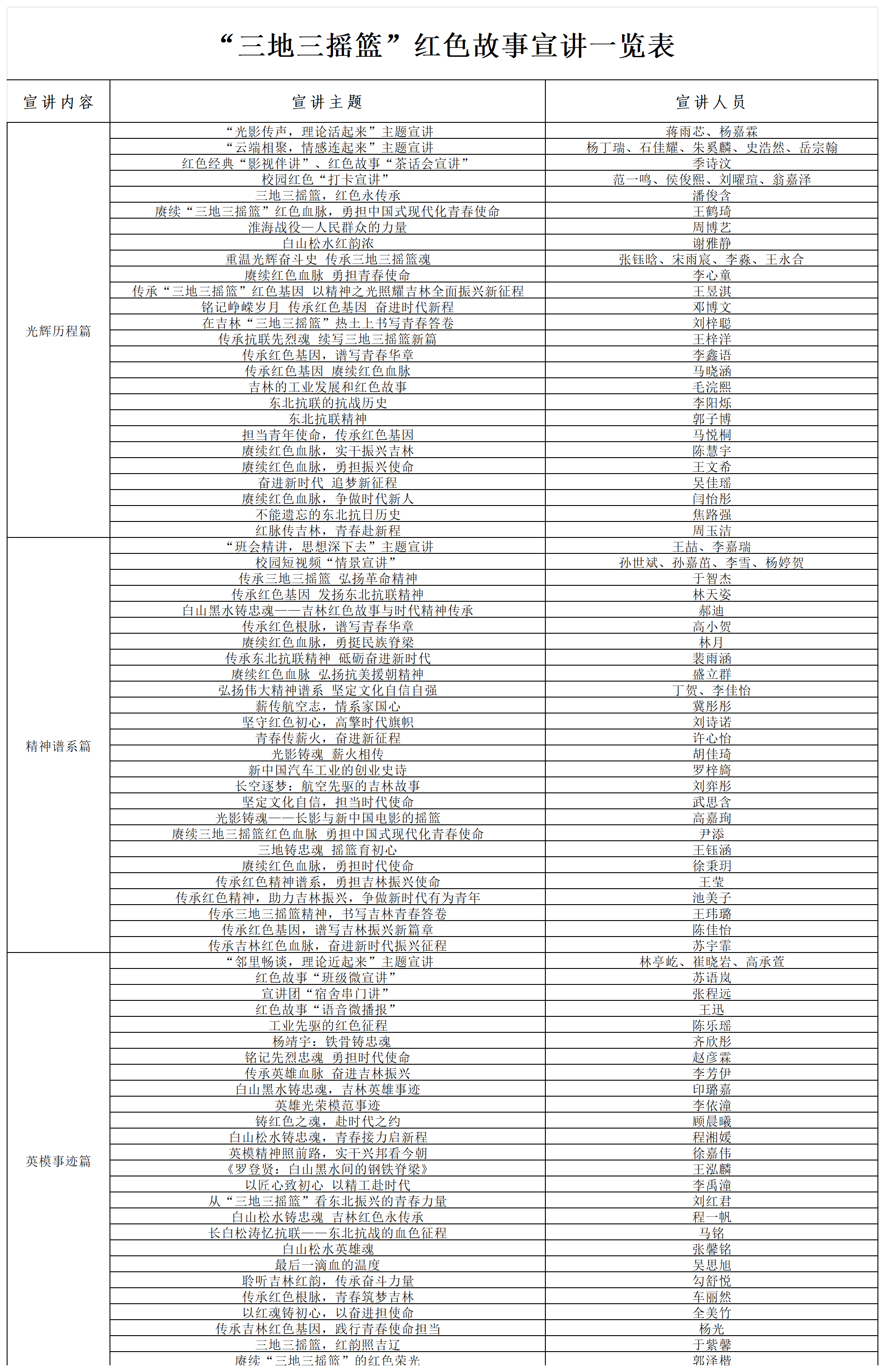 此次全校“三地三摇篮”红色故事宣讲活动,覆盖范围广、参与人数多、育人实效强,不仅让青年学子系统掌握吉林红色历史知识,厚植爱党爱国爱家乡情怀,更锤炼了学生骨干的理论素养与宣讲能力,营造出“学红色历史、讲红色故事、传红色精神”的浓厚校园氛围。