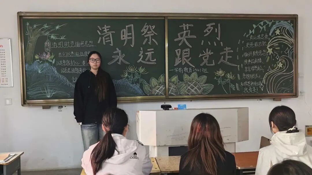 教育科学学院以专题研讨、 实践祭奠、主题团课、文艺创作形式,覆盖各团支部开展系列活动。各班围绕英烈精神学习、专业融合实践、志愿服务践行等主题深入交流,部分班级走进烈士陵园、历史遗址实地缅怀,同时以绘画、海报、征文等形式抒发崇敬之情,推动英烈精神内化于心、外化于行。