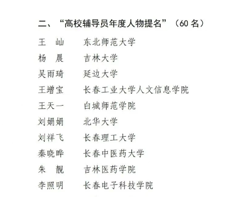 近日,经学校推荐、专家评审,我校经济与管理学院党委副书记、辅导员陈昊宇,机械与车辆工程学院团委书记、辅导员许奇获评吉林省“高校辅导员年度人物提名”。