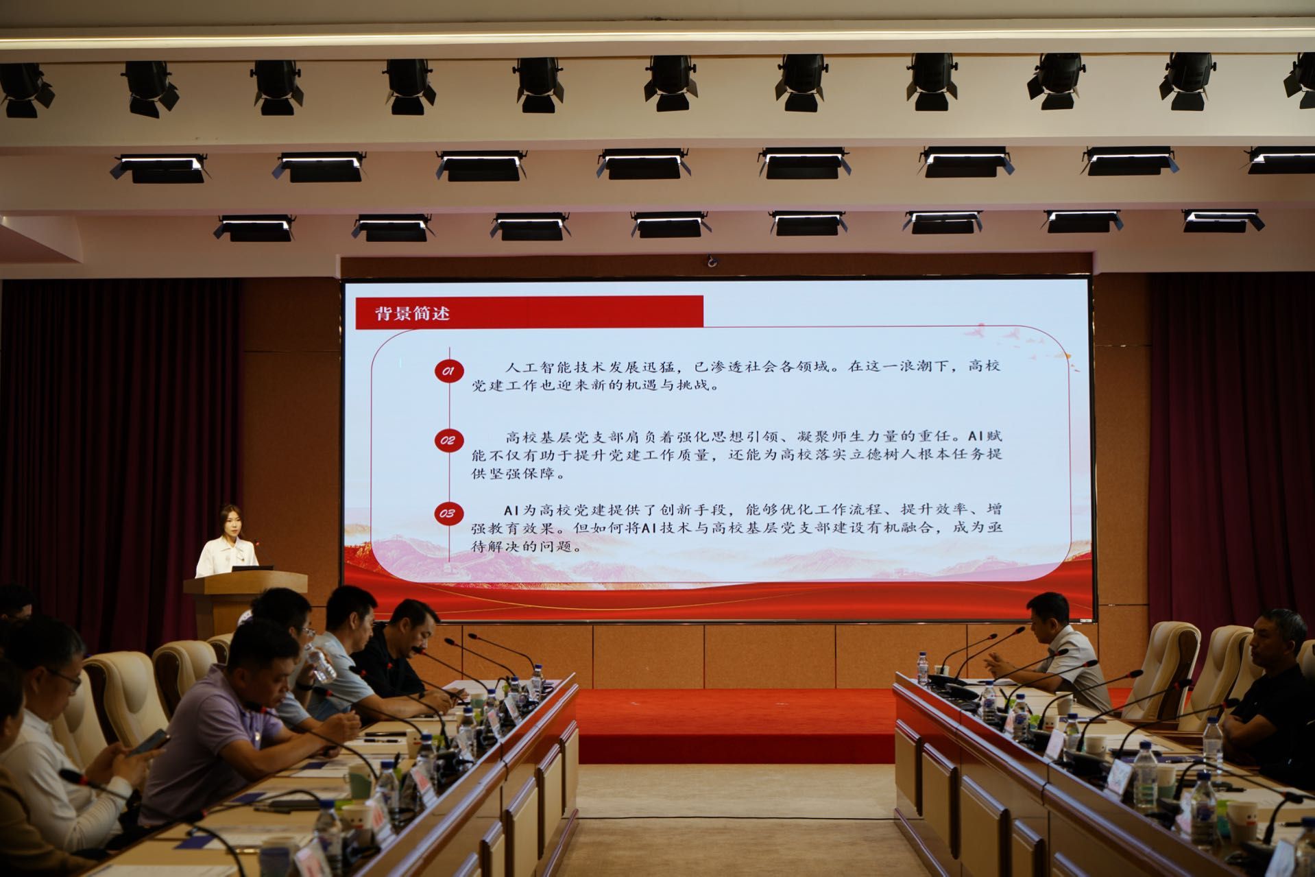 数据科学与人工智能学院党总支书记杨妍向莅临本次沙龙活动的各位领导与老师致欢迎词。她表示,本次沙龙旨在搭建“经验共享、思想碰撞、技术交流”的平台,希望通过专题汇报、互动研讨等形式,推动学工干部深入了解AI在办公、党建、科研等领域的应用场景,共同探索数智时代辅导员工作的新方法、新路径,助力学校学生工作高质量发展。