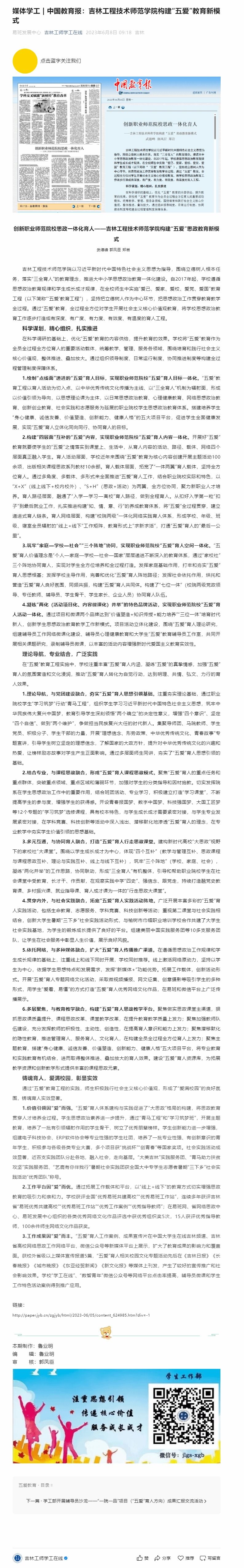 新闻动态 媒体学工| 中国教育报:吉林工程技术师范学院构建“五爱”教育新模式 作者:浏览:时间:2025-12-16 请点击跳转:媒体学工 | 中国教育报:吉林工程技术师范学院构建“五爱”教育新模式 上一条:媒体学工 | 美美与共守初心 籽籽同心结亲情——吉林工程技术师范学院举办民族团结一家亲结亲交友活动 下一条:喜报 | 于子原、董朔获2025年吉林省高校辅导员素质能力提升训练营“特别表现”奖