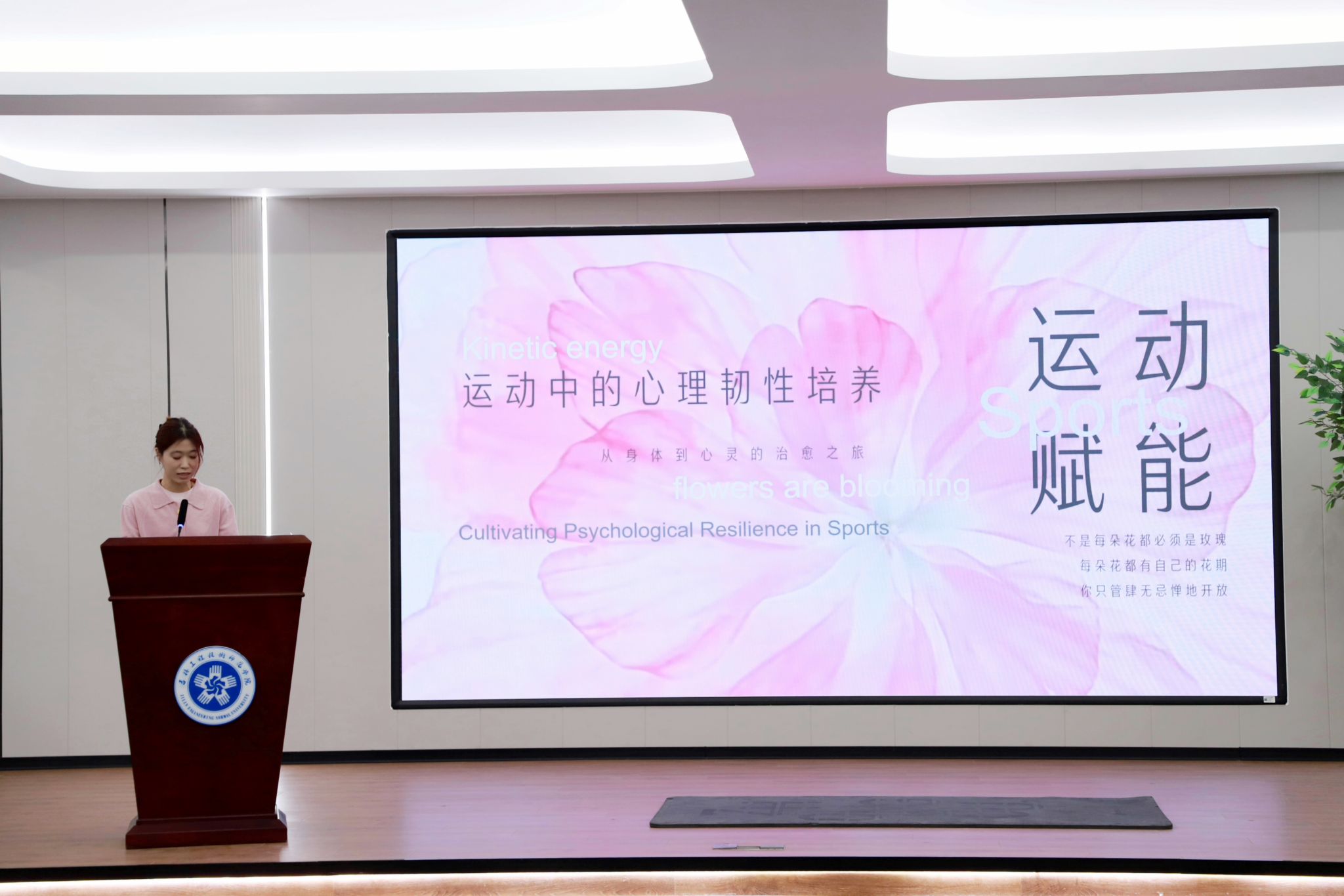 艺术与设计学院辅导员车驰以“运动赋能:运动中的心理韧性培养”为主题,从科学原理与实践应用出发,讲解瑜伽对心理健康的积极作用,帮助师生在锻炼中锤炼韧性、释放压力。