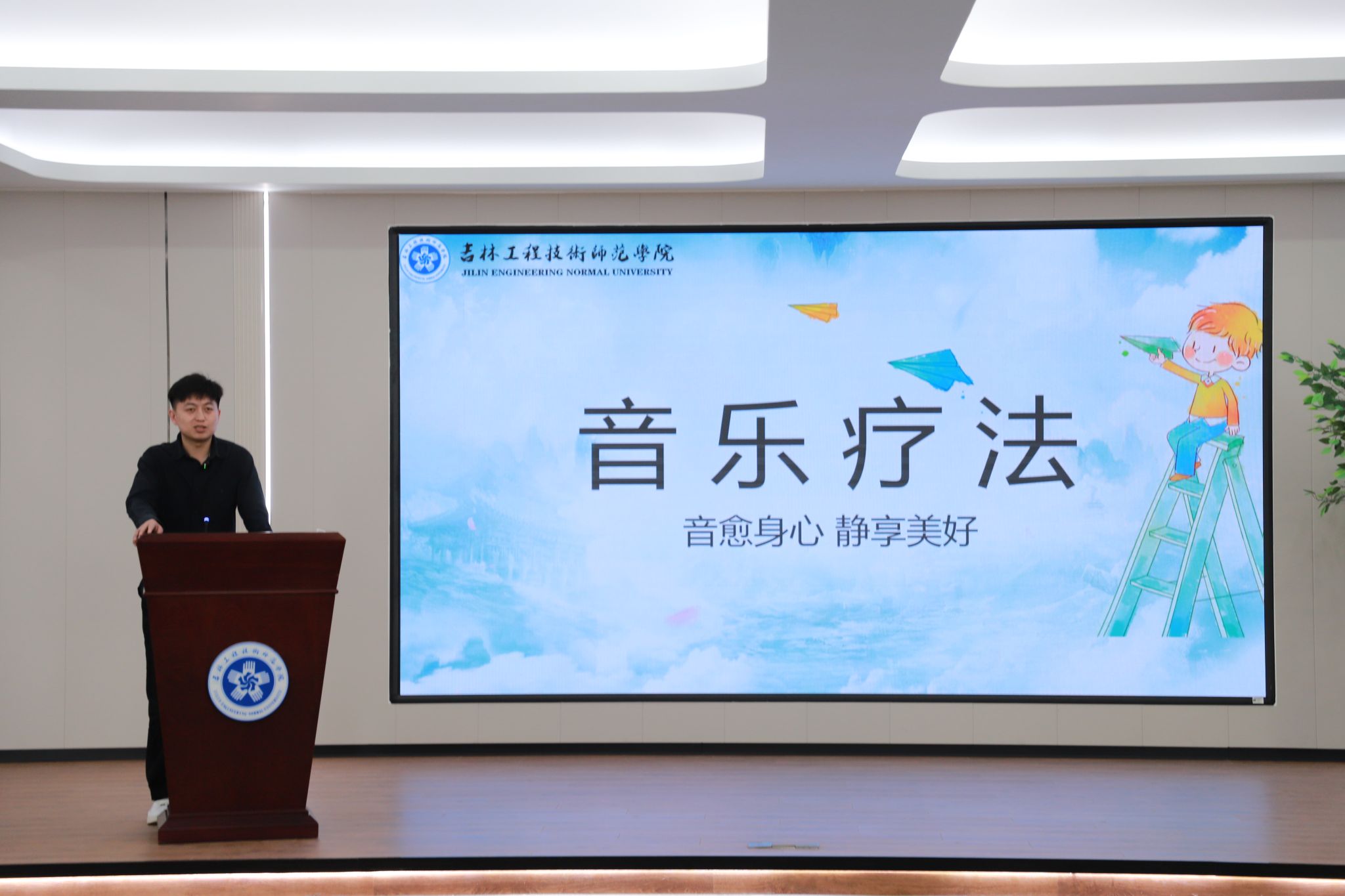 文化浸润环节,两位老师带来精彩分享。机械与车辆工程学院辅导员李响以“音乐疗法——用旋律治愈心灵”为题,结合中医“五音疗疾”理论与大学生压力特点,讲解音乐调节情绪、舒缓压力的原理与实操方法,用旋律为心灵赋能。经济与管理学院教师杨宁深耕儒家传统文化,围绕“中华优秀传统文化在心理健康教育中的运用”,将经典哲学思想与育人实践结合,为心理育人筑牢文化根基,实现以文化人、以文育人。